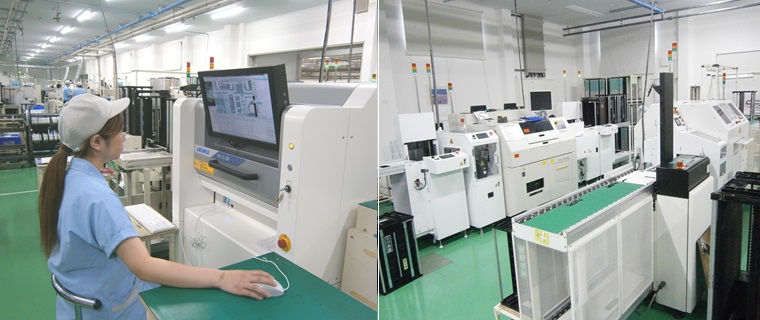 最新鋭機による基板実装 入れない、造らない、出さない、を合言葉に管理されたシステムで生産を行っています。