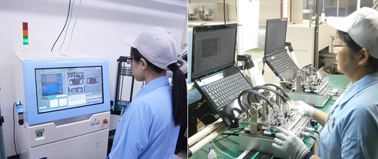 出来上がった基板の検査は自動検査設備で行っています。
