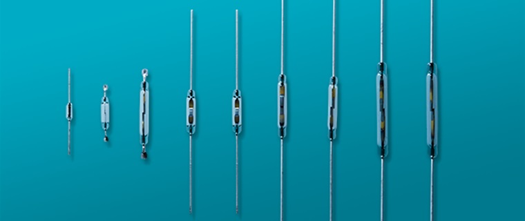 ガラスカプセルに磁性体のリードを対向させて接点としたものを封入した構造で、磁気に反応して接点を開閉します。ガラスカプセル内は不活性の窒素ガスで満たされており、接点は周辺環境の影響を受けないため高い信頼性と耐久性を確保することができます。