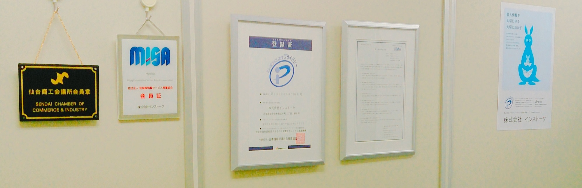 プライバシーマークの認証も取得しており個人情報保護に努め、お客様と社員の大切な個人情報を守っています。また、設立当初より宮城、仙台の企業法人グループの正規会員に登録して、県内外を含めた地元企業の信頼できる善きビジネスパートナーとして重要な責務を果たしています。