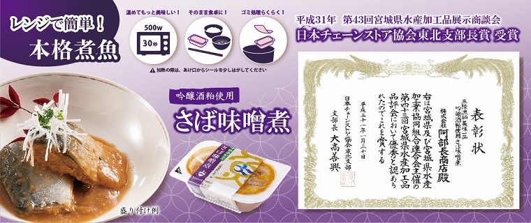 三陸産の鯖を地元の酒蔵の吟醸酒粕で風味付けした当社オリジナルの「さば味噌煮」が“日本チェーンストア協会東北支部長賞”を受賞しました。健康志向を背景にした鯖缶がブームの中で、女性や独身者、共働き世帯のキーワードになっている「時短」「個食」に着目して開発した商品です。当社従来品より量を少なくして食べきりサイズにしました。そのまま食べられるほか、トレーのまま電子レンジで温めることが可能。常温で製造日から1年間保存できるので常備品としても役立ちます。個食化の現代に合った商品のコンセプトやパッケージ・味が評価され今回の賞を受賞しました。このほか「あぶりさんま」が”天皇杯”という加工食品品評会の最高賞を受賞しており、様々な分野から評価を得ながら、また新しい商品づくりにチャレンジしています。