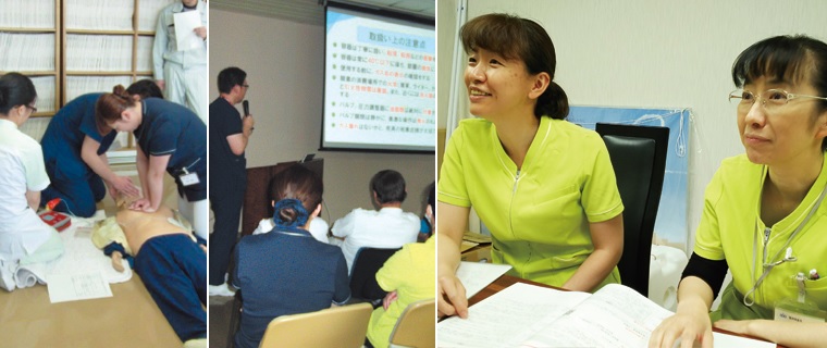 「地域の人々の健康を守り、患者さまに選ばれる安全で質の高い看護を行う」事を理念に掲げ、のびのび学び、活き活き働く、活気ある職場を目指しています。忙しさの中でも、「患者さまの尊厳を守り、安全な医療を提供すること」「常に問題意識を持ち、専門職業人として、向上すること」「地域との連携に努め、選ばれる病院を目指すこと」「思いやり、助け合いの心を常に持ち、働きやすい環境を構築する事」を柱とし、日々の行動指針としています。