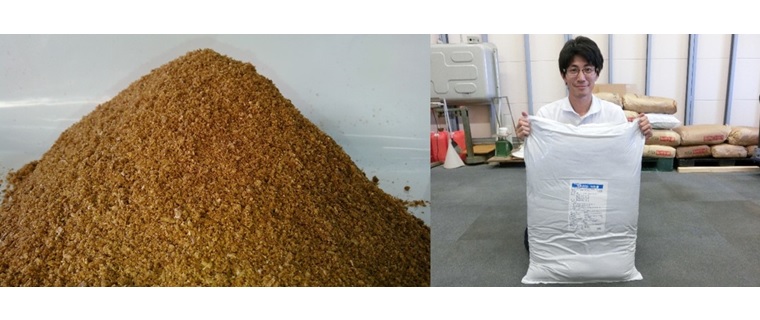 米ぬかとふすま(小麦剥がら)、糖蜜や微生物資材を混合した後、加温発酵させた家畜用飼料添加物「ラクト君」の製造・販売を行っています。生のエサよりも長期保管が可能で、発酵していることで家畜の食欲が増し、肥育の促進につながります。米ぬかは岩沼市内の米穀店から仕入れ、資源を無駄にすることのないように努めています。