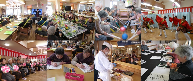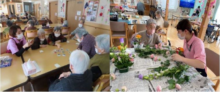 みやぎ愛隣会のデイサービスでは、体と頭の健康を維持する「生き活きライフ」と心の健康を保つ「楽・らくライフ」を実施しております。1日を通し、午前は健康を切り口として個人の能力(機能訓練や脳トレ等)に着目した活動を中心に、午後は集団で和気あいあいと楽しみながらできアクテビティ(レク・クラブ活動・カルチャー教室)を中心に、充実した「生活時間」を過ごして頂けるようサポートしております。