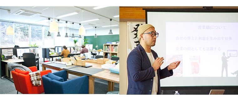仕事内容は、商品開発から、広告の企画・製作、通販サイトの運営までを全て自社で行っています。社内の業務管理も自社開発のアプリで効率的にシステム化した結果、効率が上がり、残業がほぼゼロになりました。営業はノルマや飛び込み営業などはありません。お客様と直接つながるコミュニケーションを大切に、もっと「喜んでいただくには」、「必要とされるには、どうするか」をみんなで話し合う。やりがいをもって実践していく体制を確立しています。水産加工業は「働く環境が厳しい」と言われますが、当社は福利厚生に力を入れており週休二日を実施。事務系で年間98日、工場は105日の休みがあります。また、半日単位でとれる有給制度を設け、お子さまなどの都合で休めるようにしました。これからの企業は社員を大切にしていかないと生き残れないという思いがあります。特に人口減が進む地方では、きちんとした組織づくりをしていかないといけない。そういう観点から、従来の水産加工業界の常識をくつがえす、新しい環境づくりに積極的に取り組んでいきます。