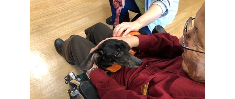 当施設にはアイドル犬「ダッツ君」がいます。日々利用者様を癒し、職員を癒してくれています。「ダッツ君」に会いに来てくれるご利用者様、逆に「ダッツ君」を連れて会いに行く事もあります。施設という環境でも、当たり前の日常を送ることが私たちの目標です。