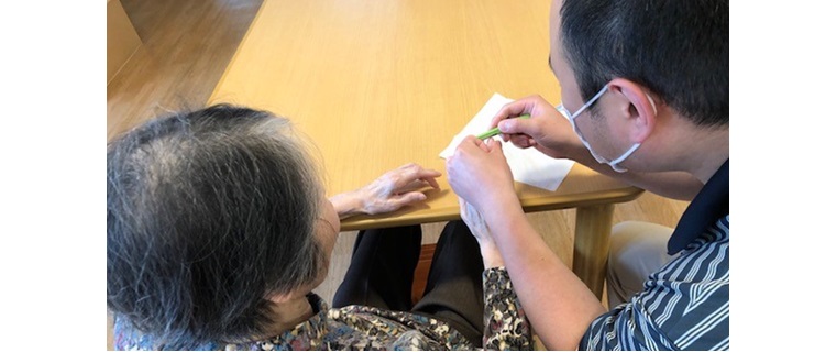 私は3年前にこのリーフ鶴ケ谷に入職して、今年無事に介護福祉士の資格を取りました。何気ない日常のお手伝いを通し、ご利用者様と心を通わせる事にとてもやりがいを感じます。これからは有資格者として、更にステップアップして行きたいです。