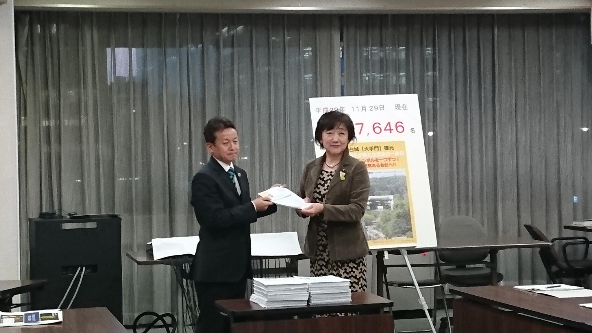 平成29年11月29日 郡市長に「仙台城大手門復元署名」17,646名