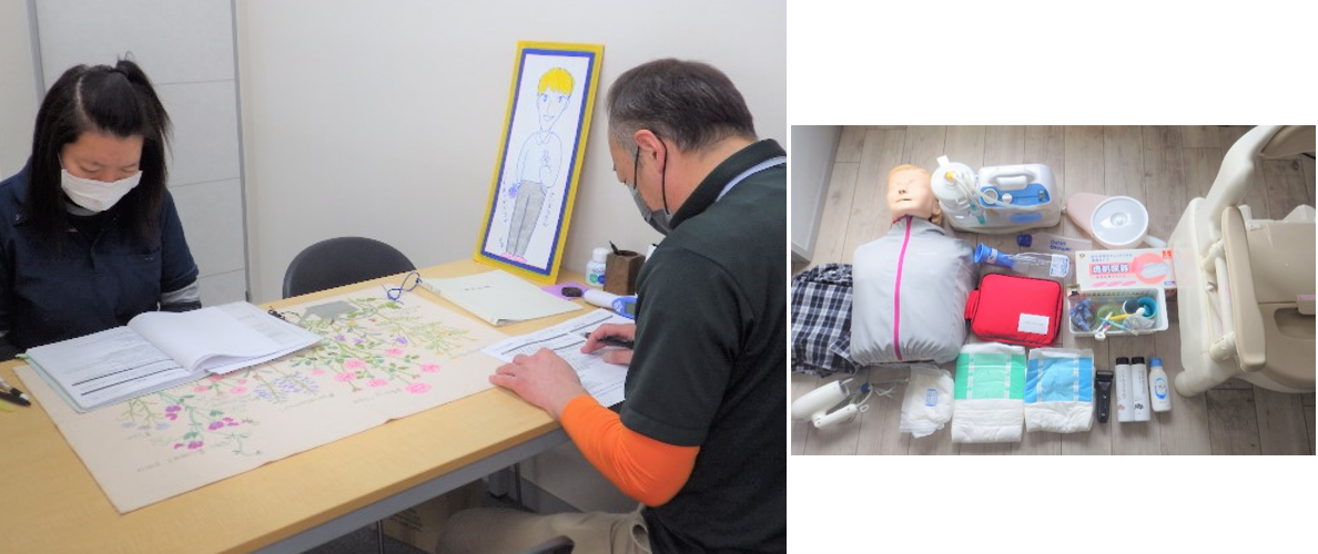当然ながらしっかり覚えてプロとして訪問して頂くために、会社には研修室があり、おむつ交換等実習を行うことができるので安心して支援に挑めます。