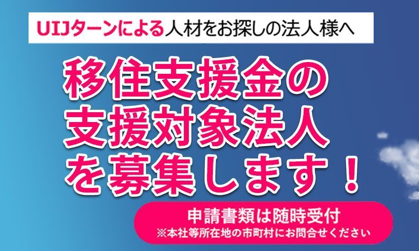 移住支援金の支給対象法人を募集しています!!