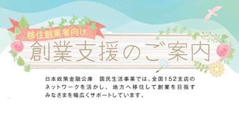 日本政策金融公庫国民生活事業は、地域の身近な金融機関として、小規模事業者や創業企業の皆さまへの事業資金融資のほか、お子さまの入学資金などを必要とする皆さまへの教育資金融資などを行っています。全国152支店のネットワークを活かし、地方へ移住して創業を目指すみなさまを幅広くサポートしています。「新規開業資金」などのご融資を通じて、地方に移住して新たに事業を始める方のお手伝いをしております。