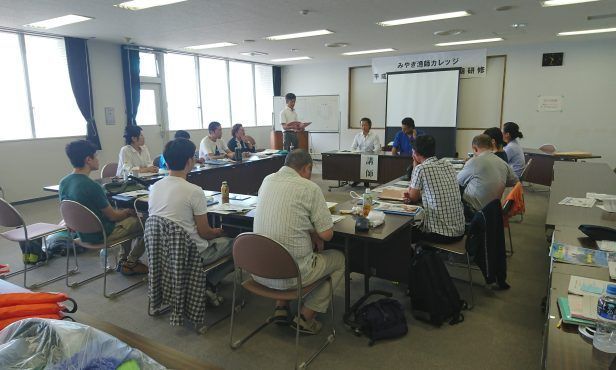 「みやぎ漁師カレッジ」には、約4か月の長期研修(9月~)、3日間の短期研修(10月,1月予定)があります。長期研修では、漁師を志す方を対象に水産業に関する座学講習や様々な沿岸漁業の現場研修(各1~2週)を行い、その後各自が希望する漁業種類で本格的に就業を前提とした専門研修を行います。小型船舶・無線等の資格講習もあります。短期研修では、海や漁師の仕事に興味のある方を対象に、座学や沿岸漁業の見学・体験を行います。また、7月と11月には「みやぎ就業支援オンラインフェア」を開催予定です。漁業就業を志す方に求人中の漁業者を紹介するほか、「みやぎ漁師カレッジ」等参加可能なプログラムについても御案内します。